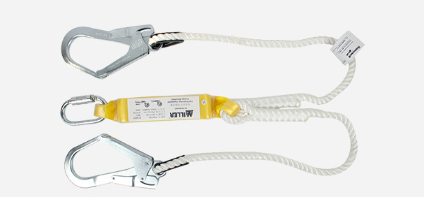 •材质:系绳采用12毫米高强度尼龙绳,破断强度达22KN。安全钩和脚手架挂钩材料为镀锌钢,能量缓冲部件材料为聚酯。